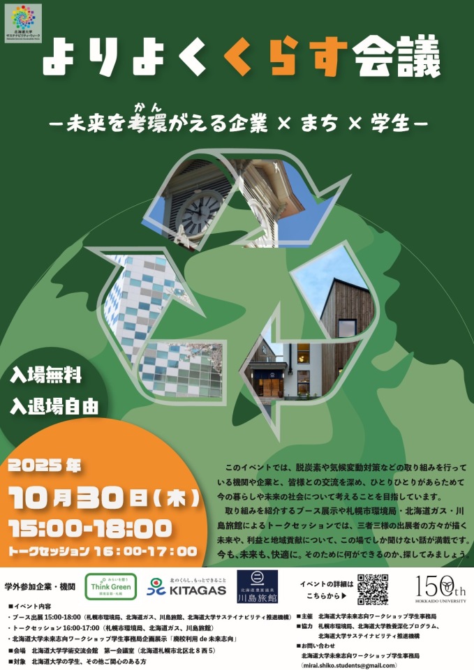 2025年10月30日創基150周年記念事業「よりよくくらす会議―未来を考環(かん)がえる企業×まち×学生―」開催のお知らせ- ワークショップ