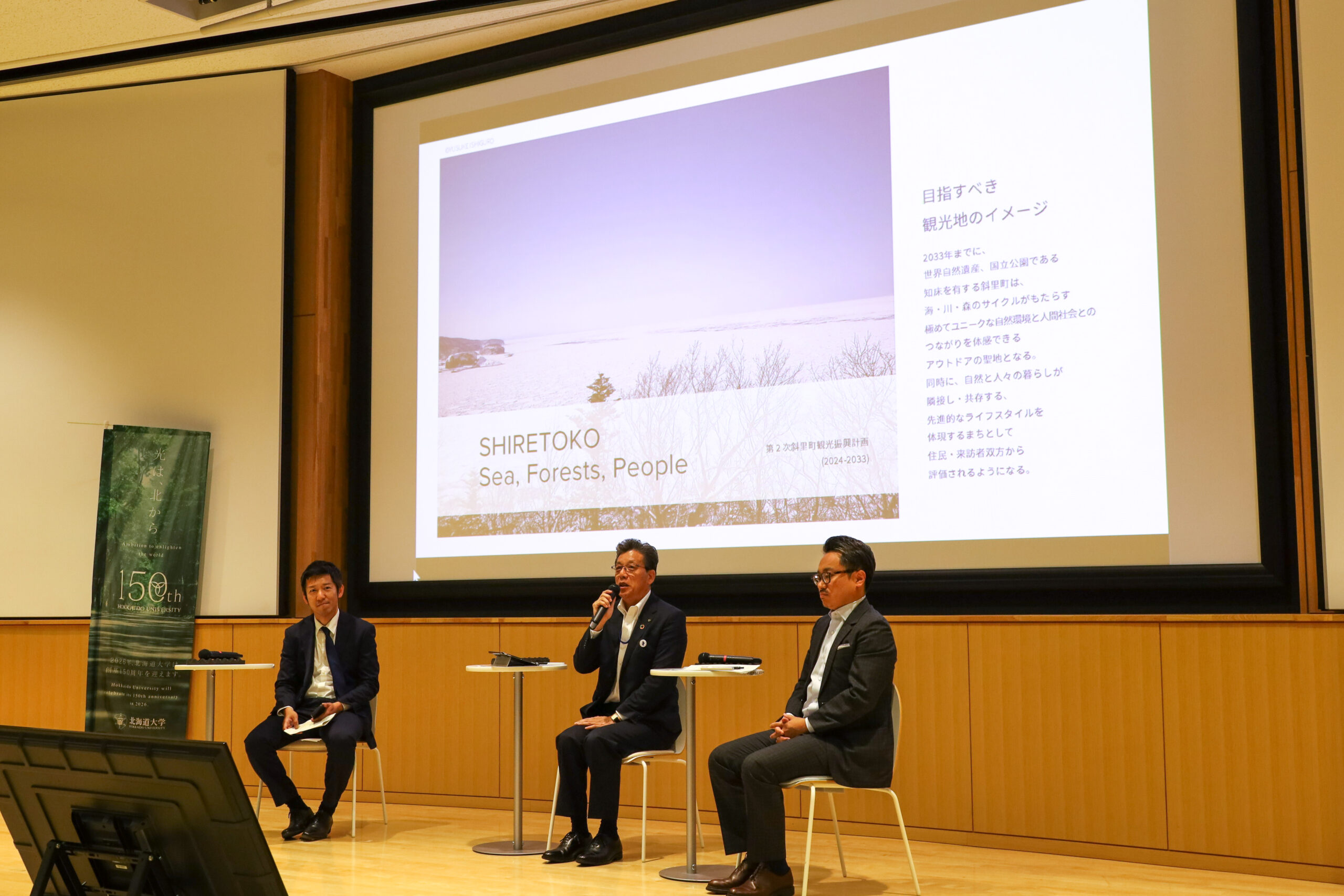 The symposium was attended by guests including Hokkaido Governor Naomichi Suzuki, Sapporo Mayor Katsuhiro Akimoto, and Hakodate Mayor Jun Oizumi. The venue was packed to capacity with 148 participants, including local government leaders, staff, and Hokkaido University faculty.