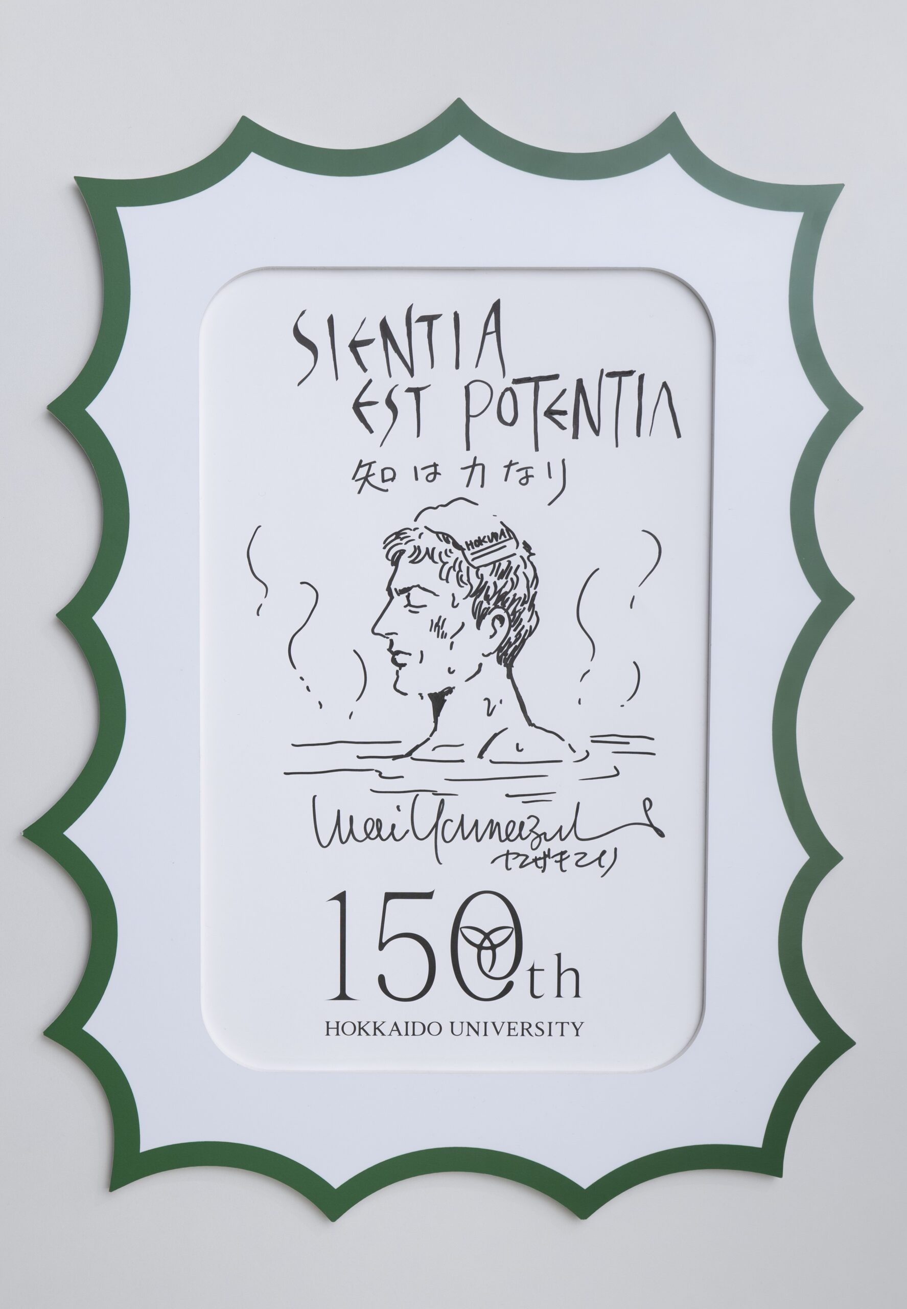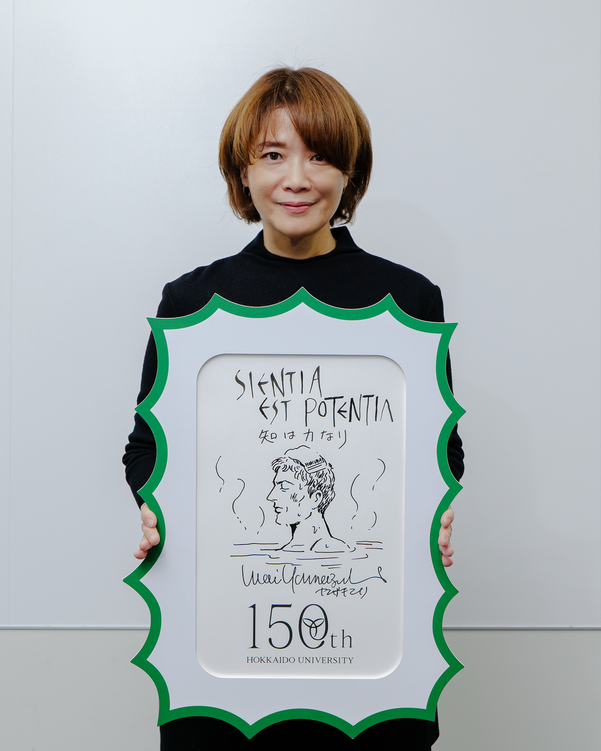 We received a message and illustration from Mari Yamazaki for Hokkaido University as it approaches its 150th anniversary. The Latin phrase scientia est potentia means “knowledge is power.” The towel on the head of the protagonist in her representative work, Thermae Romae, bears the inscription “HOKUDAI.” (short name for Hokkaido University)