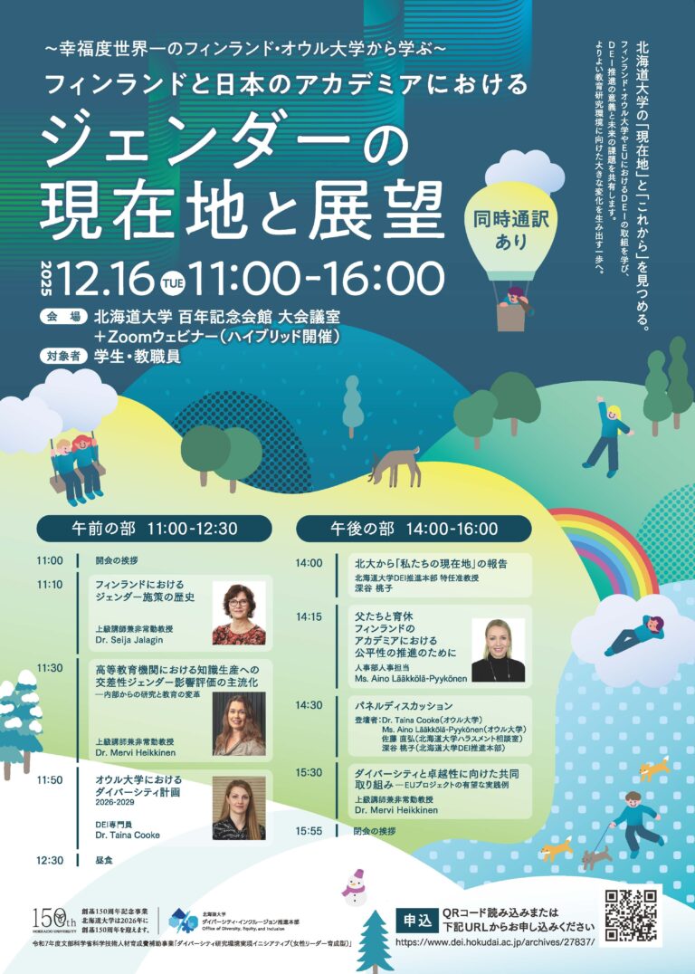 2025年12月16日創基150周年記念事業/国際シンポジウム ~幸福度世界一のフィンランド・オウル大学から学ぶ~フィンランドと日本のアカデミアにおける『ジェンダーの現在地と展望』 のご案内- 講演会
