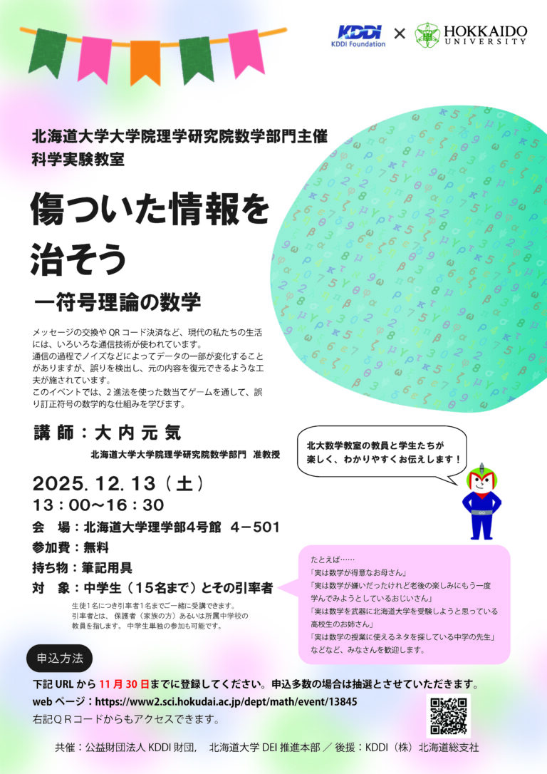 2025年12月13日科学実験教室「傷ついた情報を治そう —符号理論の数学」を開催します- ワークショップ