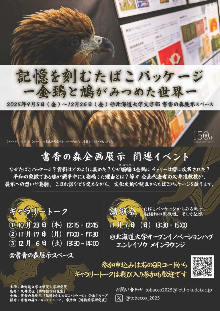 2025年11月9日 ~ 12月6日創基150周年記念事業/大学院文学研究院 書香の森企画展示関連イベント:ギャラリートーク&講演会「たばこパッケージからみる戦争、動植物の象徴性、そして記憶」- 講演会