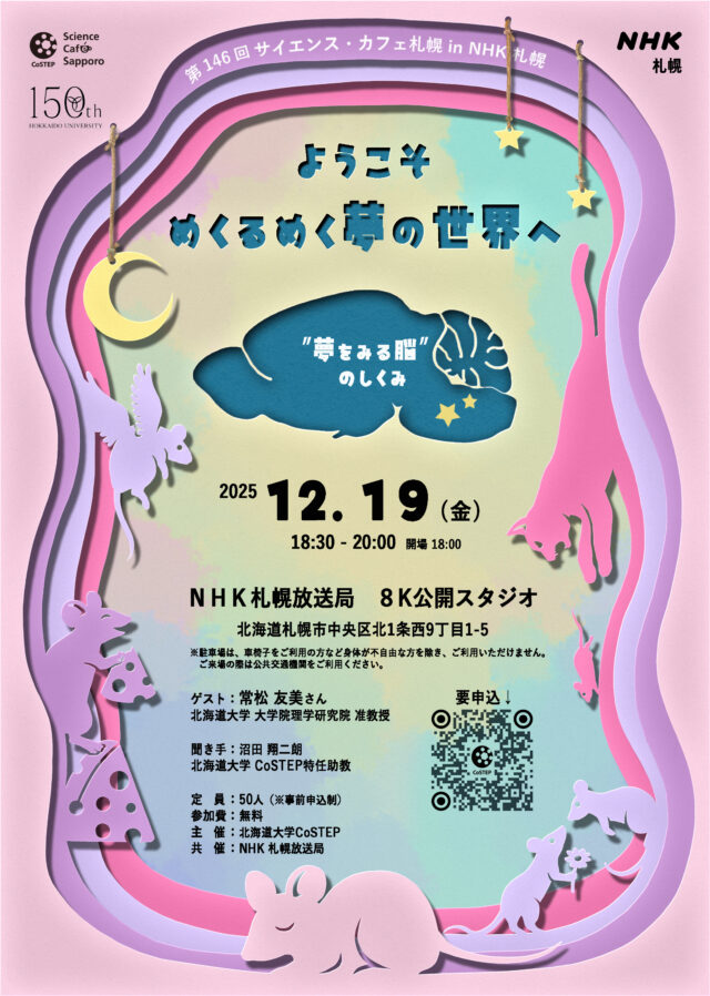 2025年12月19日第146回 サイエンス・カフェ札幌 in NHK札幌「ようこそ、めくるめく夢の世界へ。“夢を見る脳”のしくみ」を開催します- トークイベント