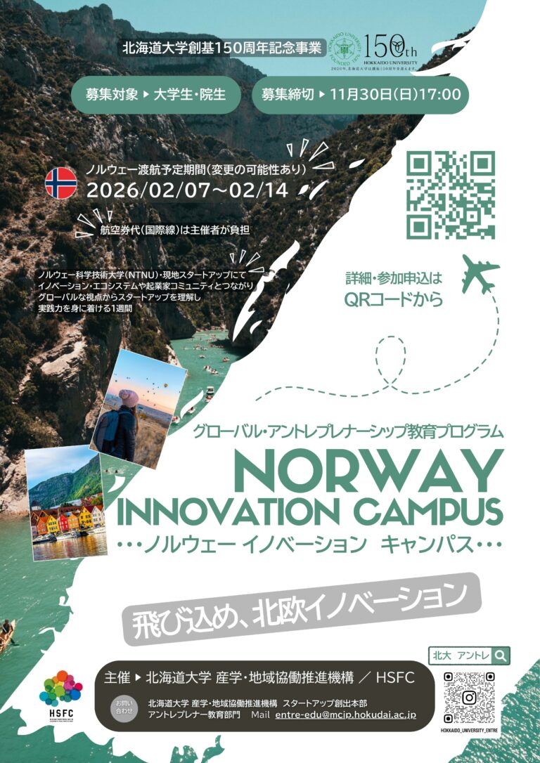 2025年11月18日 ~ 30日創基150周年記念事業/【11/30締切】グローバル・アントレプレナーシップ教育プログラム「Norway Innovation Campus」参加者募集- セミナー