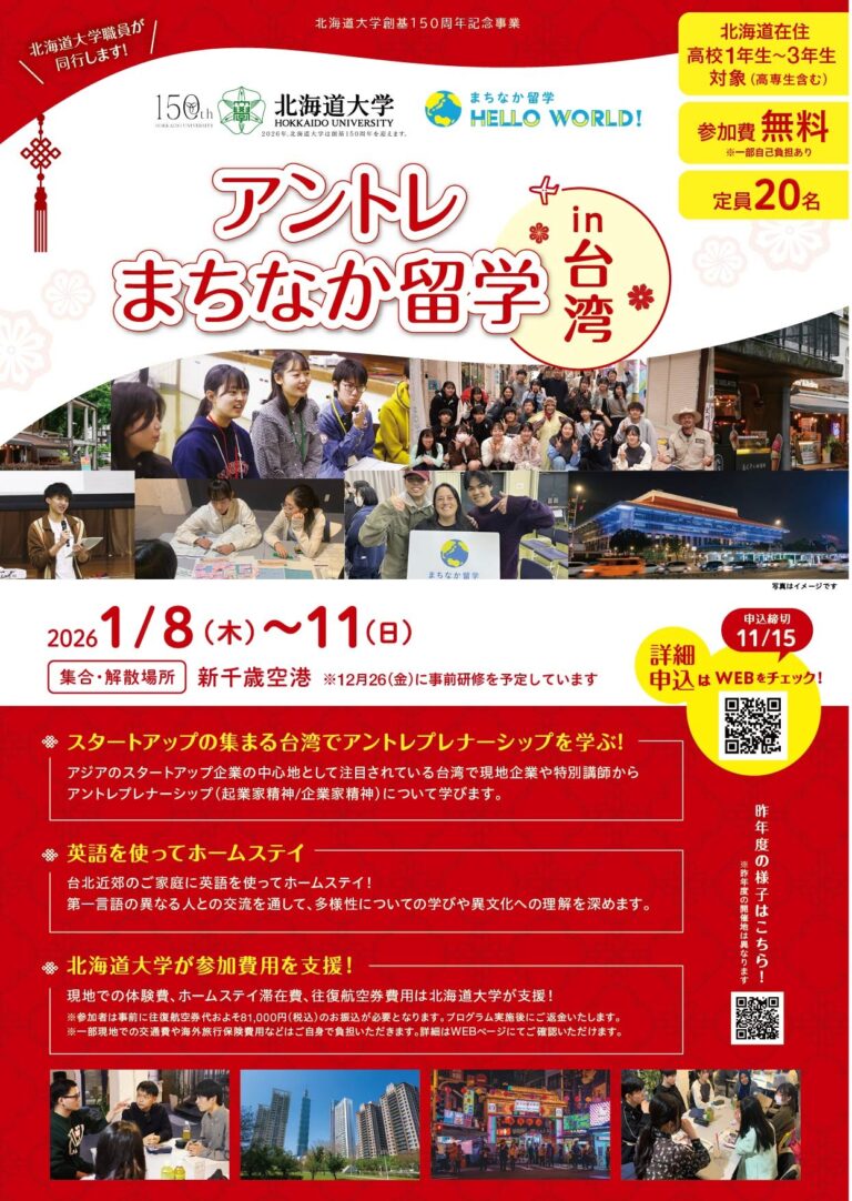 2026年1月8日 ~ 11日創基150周年記念事業/高校生等向け「アントレまちなか留学in台湾」を開催します!- ワークショップ
