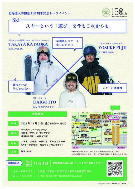 第2弾「女性アスリートの健康問題」に続き、第3弾では、北海道の強みである「雪」をテーマに、スキーを語るトークイベントを開催します。
