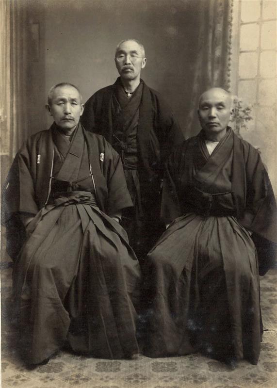 もう1点は、東京の私塾「成立学舎」にて、夏目漱石、新渡戸稲造(札幌農学校2期生・1881年卒業)、橋本左五郎(札幌農学校8期生・1889年卒業、北海道帝国大学教授)や藤根吉春(札幌農学校8期生)の英語教師だった中原貞七氏、岩手県尋常中学校(現:岩手県立盛岡第一高等学校)にて、金田一京助や石川啄木の数学教諭だった冨田小一郎氏、株式会社三田商店を設立した三田義正氏の3人が集まり、1924年4月に盛岡で撮った記念写真です。冨田小一郎氏は戸田洋子氏のご祖父様にあたります。