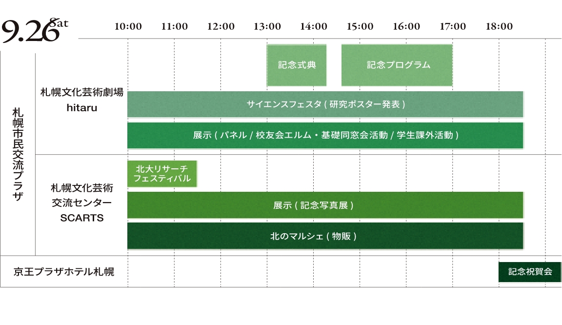 2026 年9月26日(土)・27日(日)の2日間、札幌文化芸術劇場hitaru および札幌文化芸術交流センターSCARTS を中心に、創基150 周年記念式典ならびに記念イベントを開催します。
